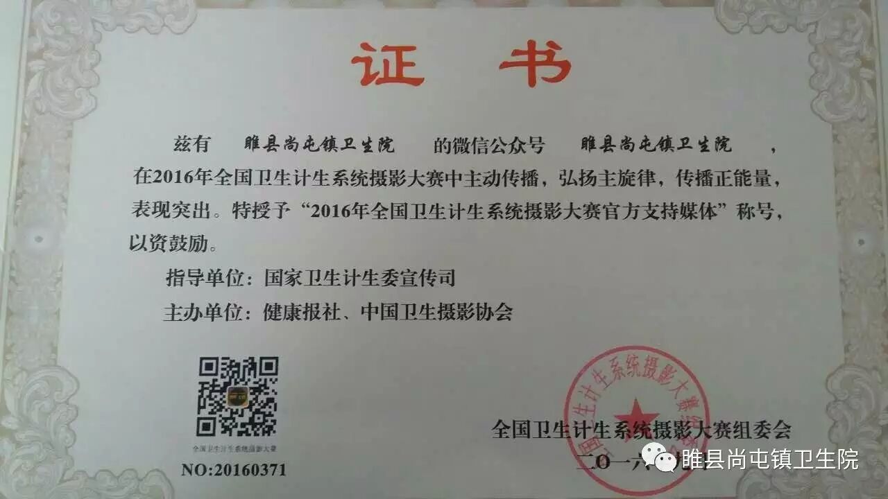 自6月份活动开展以来,睢县尚屯镇卫生院积极组织,取得了多项荣誉,同时,睢县尚屯镇卫生院微信公众平台荣获“2016年全国卫生计生系统摄影大赛官方支持媒体”称号,弘扬了主旋律,传递了正能量,为卫生计生系统的明天作出积极贡献。