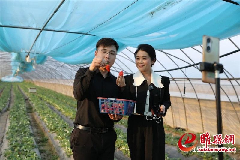 消费帮扶新途径,直播带货助振兴。3月28日,在睢县五河湾示范区袁庄村凤彩农业发展有限公司的草莓基地,县融媒体中心的主播们正通过直播体验采摘草莓、采访种植户、现场试吃的方式,让粉丝们零距离感受草莓种植园的农家风情、了解草莓种植技术和人工采摘工序,为农户和消费者搭建了一个全新互动桥梁。