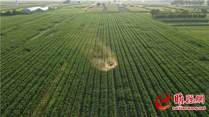 当前正值夏玉米产量形成的关键时期,7月30日,在睢县董店街道曹庄村种粮大户王申亮的玉米田里,一架无人机正在高效开展“一喷多防”作业,为秋粮丰收保驾护航。