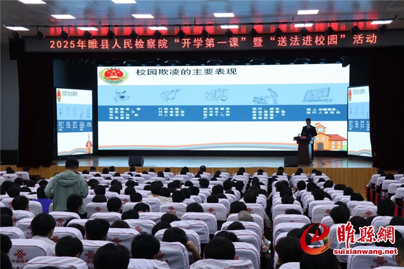 为进一步增强青少年法治意识,提升其自我保护能力,9月26日,睢县人民检察院组织干警走进睢县职业技术教育培训中心,以“护航青春成长 点亮法治未来”为主题,开展“开学第一课”暨“送法进校园”活动,为同学们送上生动的法治教育“大礼包”。市检察院党组成员、副检察长董金环,县检察院党组书记、检察长钟春毅,县教育体育局相关负责人出席活动。