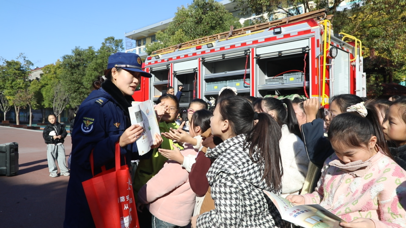 11月19日,县消防救援大队宣讲员走进实验小学开展“消防安全教育进课堂”活动。