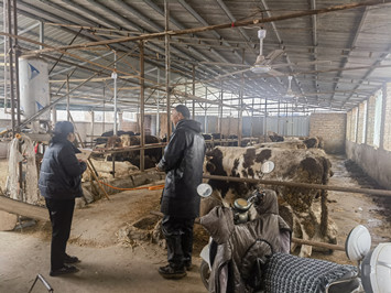 王叔饲养40头牛,因进料急需资金。一周前,客户经理小潘在村中宣传时结识了另一位养牛户张叔。虽当时无需求,但热心肠的张叔在得知邻居困境后,立即将王叔推荐给了小潘。接到消息后,小潘不顾风雪天气,当即驱车前往。