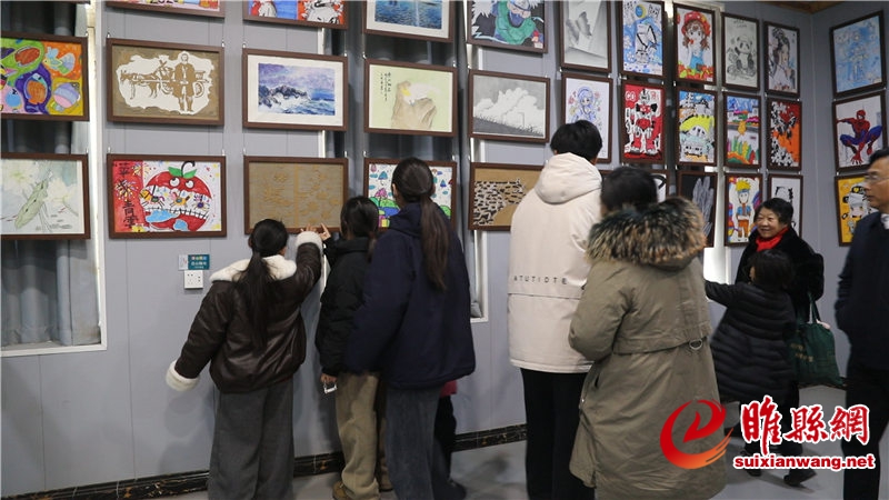 展览现场气氛热烈,集中展示了全县少年儿童的优秀美术创作成果,呈现出一场充满童真与想象的艺术盛宴,吸引了众多家长和孩子驻足参观。