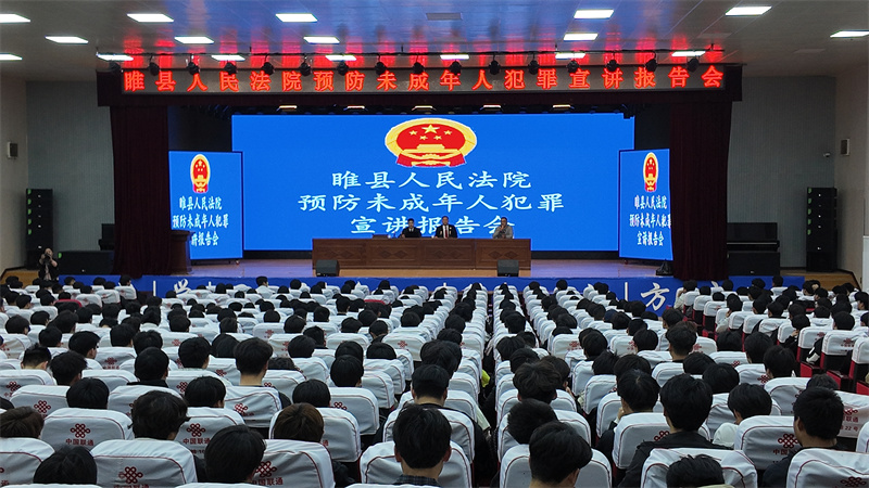 为增强青少年法治意识,营造平安校园环境,4月2日,县人民法院在县职业技术教育中心举行预防未成年人犯罪宣讲报告会。