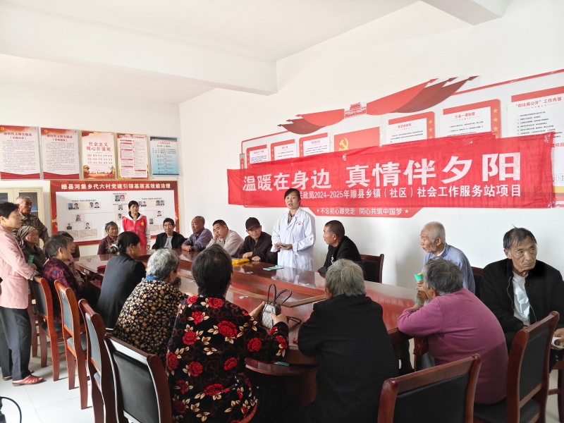 为切实提升老年人健康意识,普及科学养生知识,2025年9月18日,睢县河集站暖阳社工链接河集乡卫生院在河集乡代六村开展“健康同伴 温暖同行”社区宣传活动。