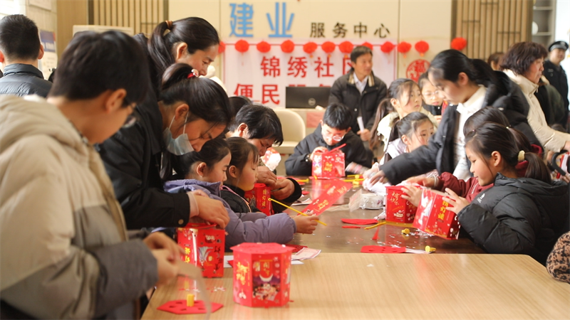 活动现场设置民俗体验区,猜灯谜、手工制作灯笼等活动深受小朋友和居民喜爱,大家在互动中传承中华优秀传统文化。