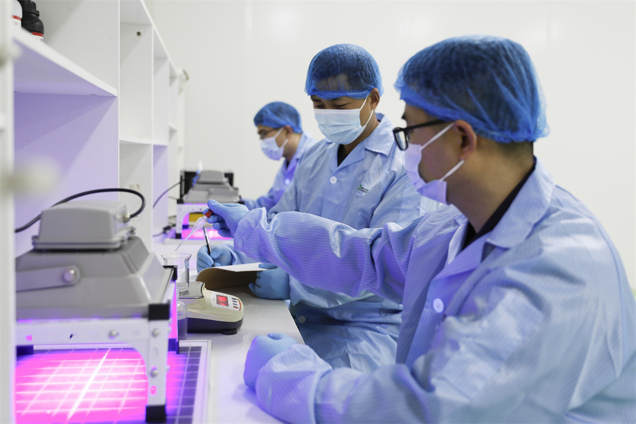 光伏面板玻璃实验室内,科研人员正在研制新型玻璃原材料配比。 徐泽源 摄(来源:学习强国)
