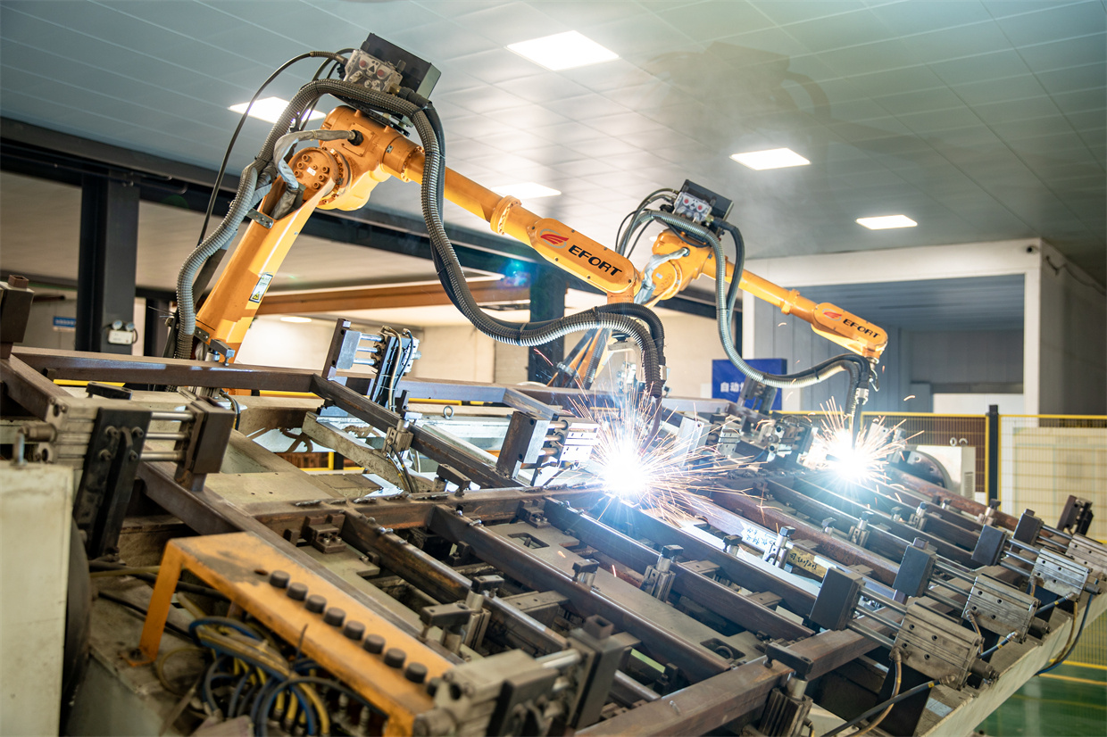 鼎能吉研科技有限公司动力电池全自动干燥箱焊接生产线上,数台焊接机械臂开足马力满负荷运转。 徐泽源 摄
