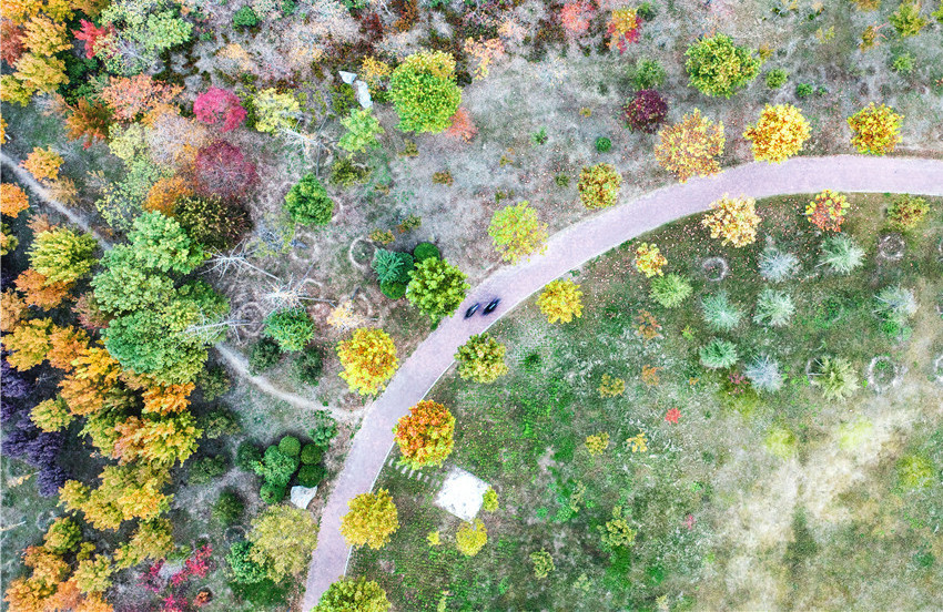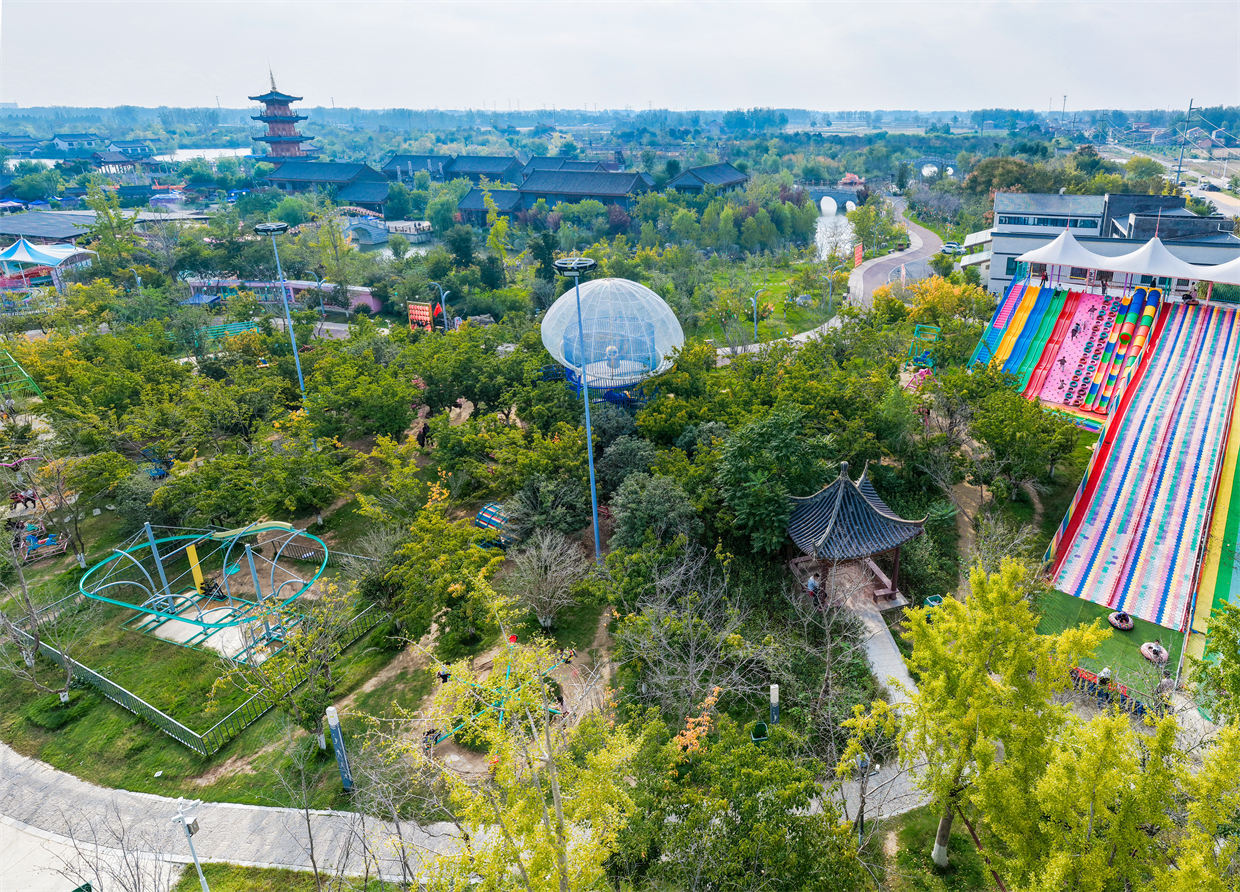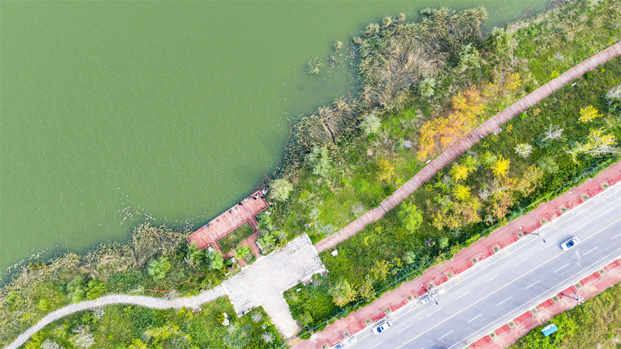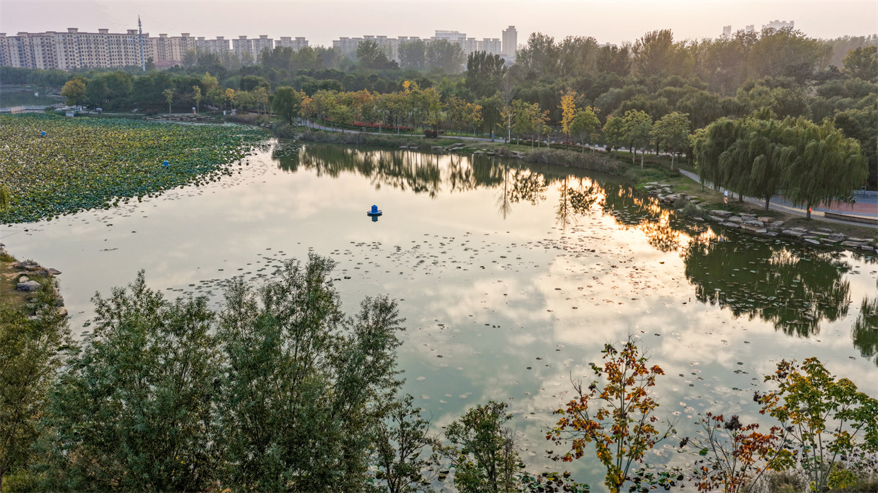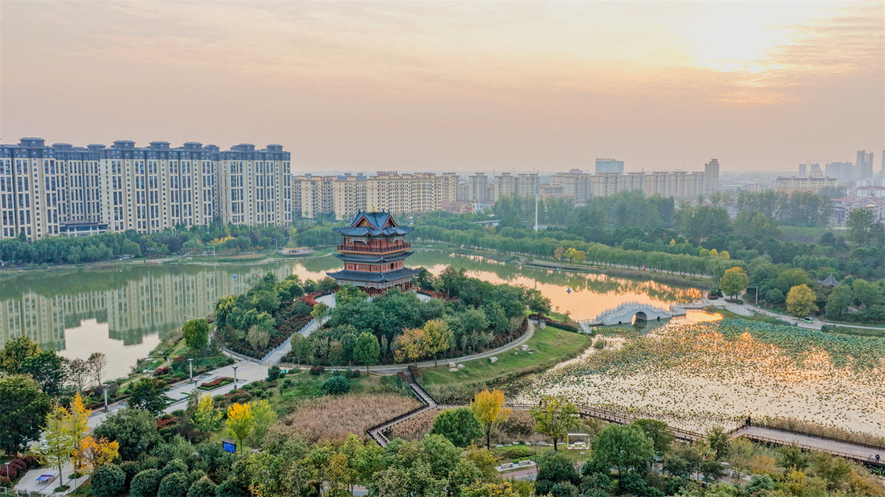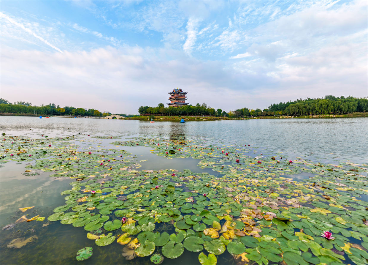 金秋时节,河南省商丘市睢县层林尽染,色彩斑斓,每一处角落都透着独特的秋日韵味,景色迷人。图为2025年10月24日拍摄的睢县凤仪湖景区。 徐泽源 摄