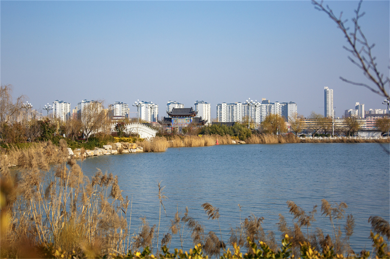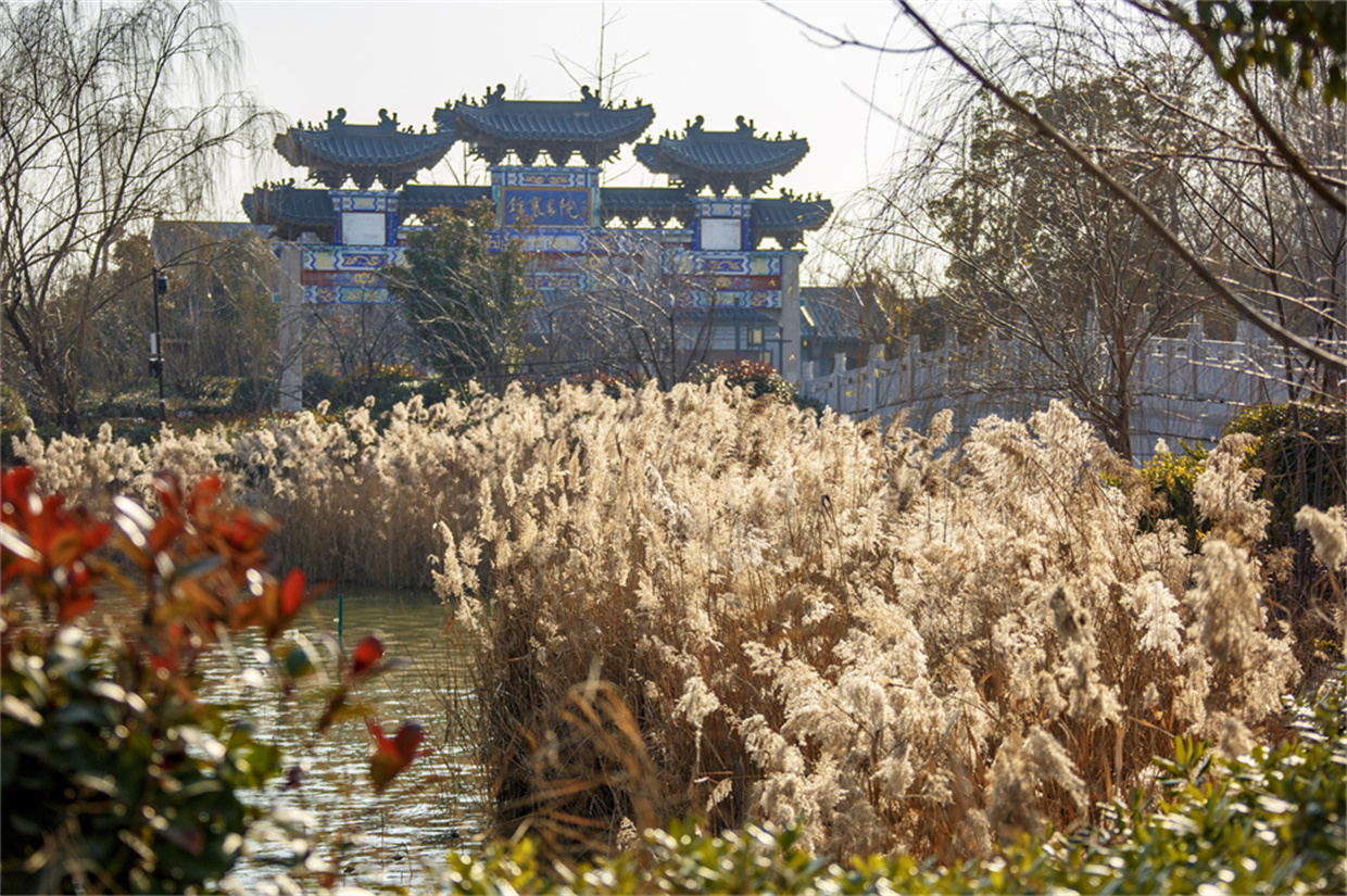 河南省商丘市睢县境内河湖众多,有“中原水城”之美誉。该县聚焦生态文明、绿色发展,扎实推进水环境综合治理,擦亮“水名片”,做好“水文章”,打造“河畅、水清、岸绿、景美”的良好生态环境,努力绘就生态文明建设新画卷。图为2026年1月11日拍摄的睢县北湖景区一角。 徐泽源 摄