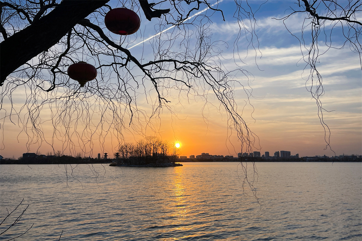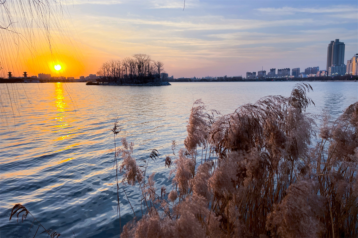 落日余晖洒在睢县北湖的水面上,宛如一幅绝美的画卷,令人沉醉。 徐泽源 摄