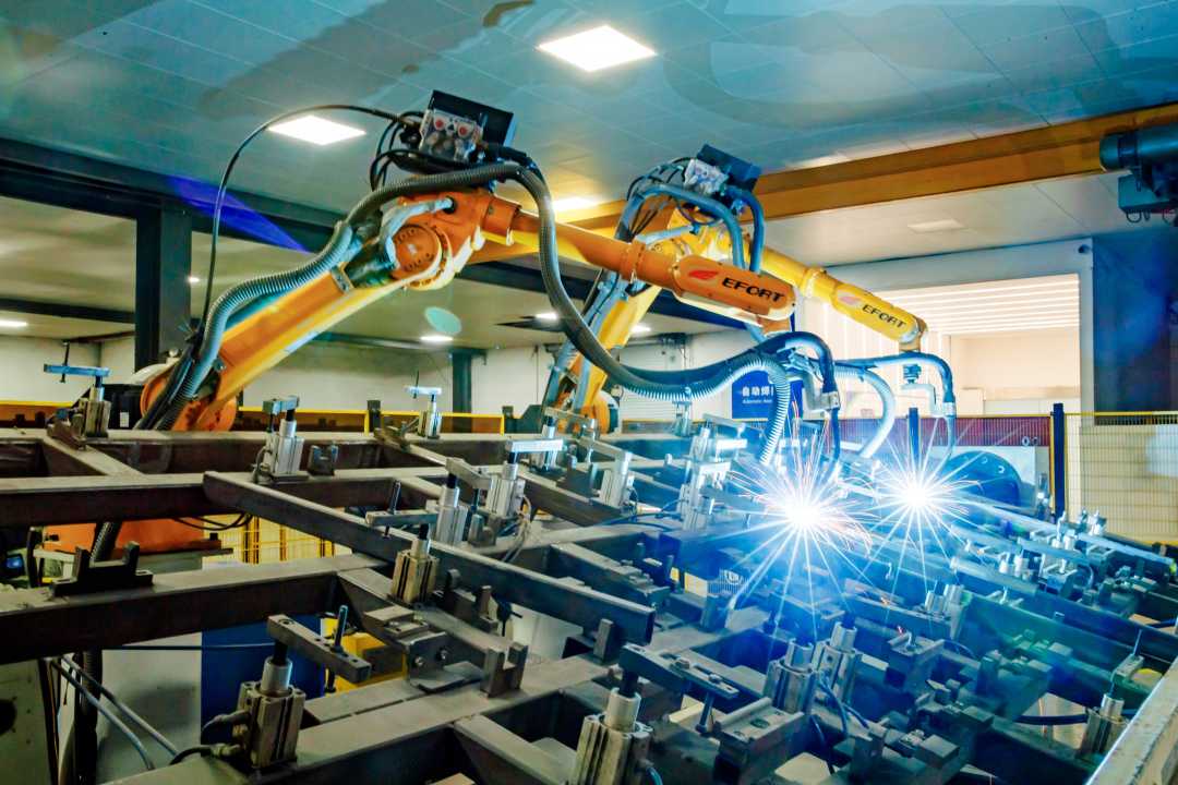 1月19日,位于河南省商丘市睢县的河南鼎能电子科技有限公司,机械臂焊接有序。徐泽源摄(中经视觉)