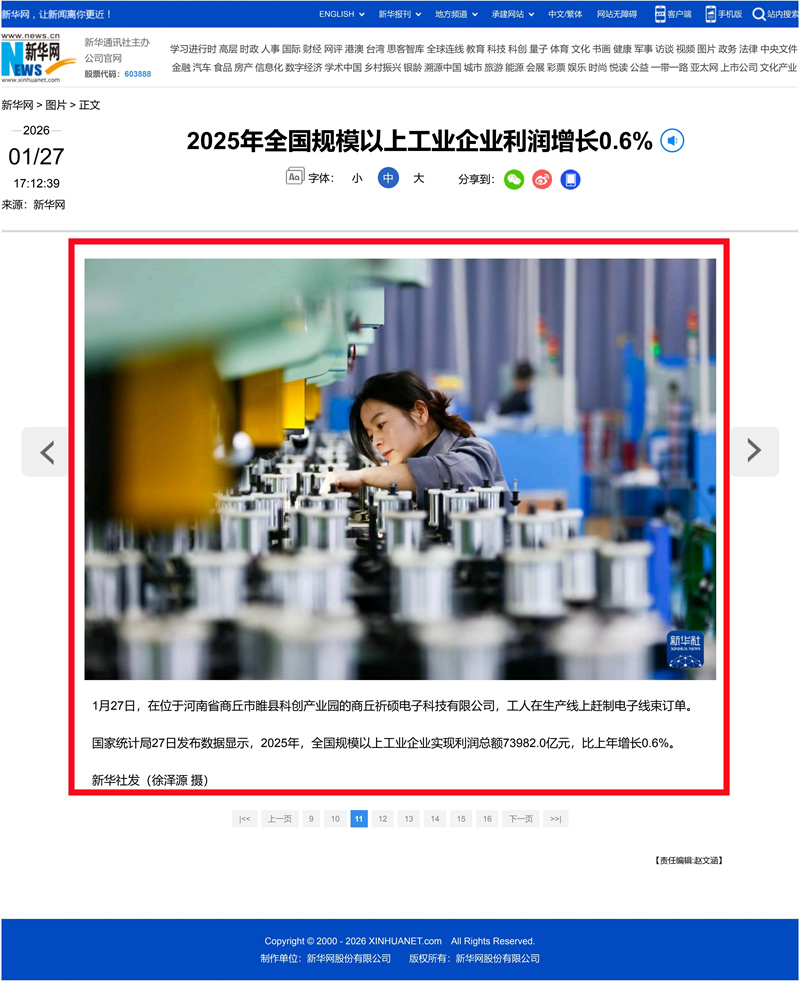 新华社关注睢县|2025年全国规模以上工业企业利润增长0.6%