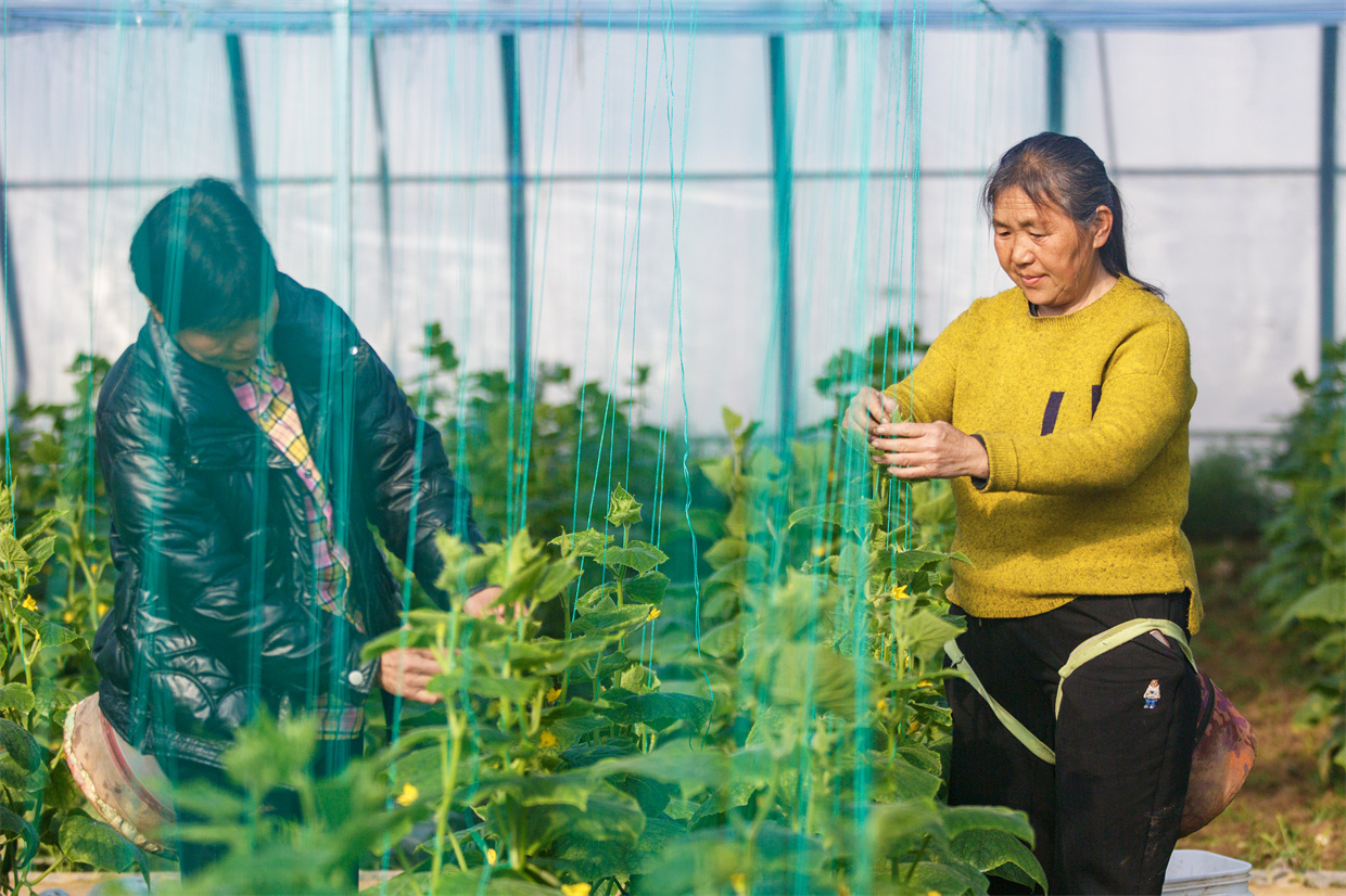 菜农正在管护黄瓜苗 徐泽源 摄