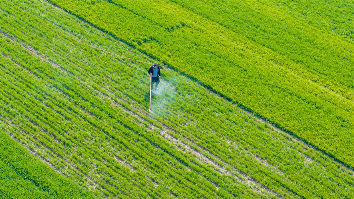 孙聚寨乡滑楼村一处农田内,农户正在进行冬小麦田间管理。 徐泽源 摄