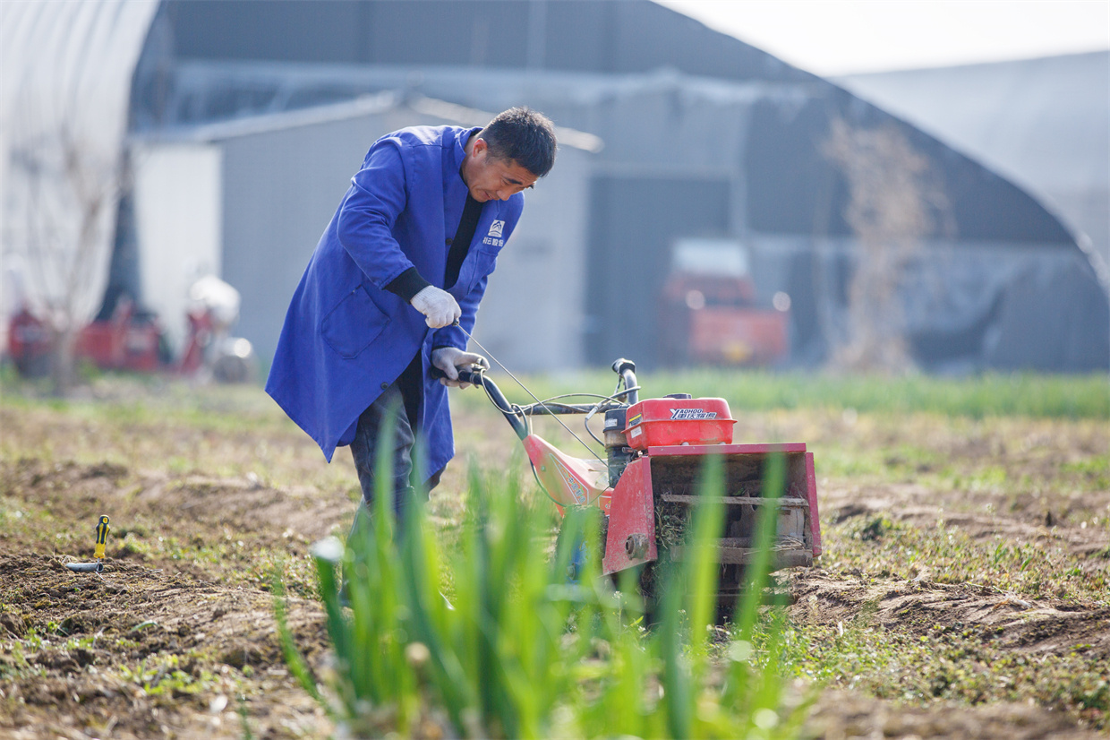 农户正在使用微耕机整备农田 徐泽源 摄