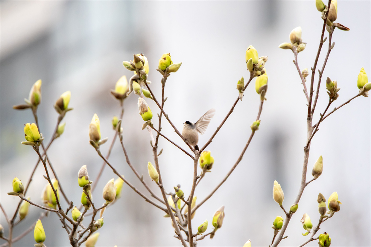 银脸长尾山雀在玉兰树上栖息 徐泽源 摄