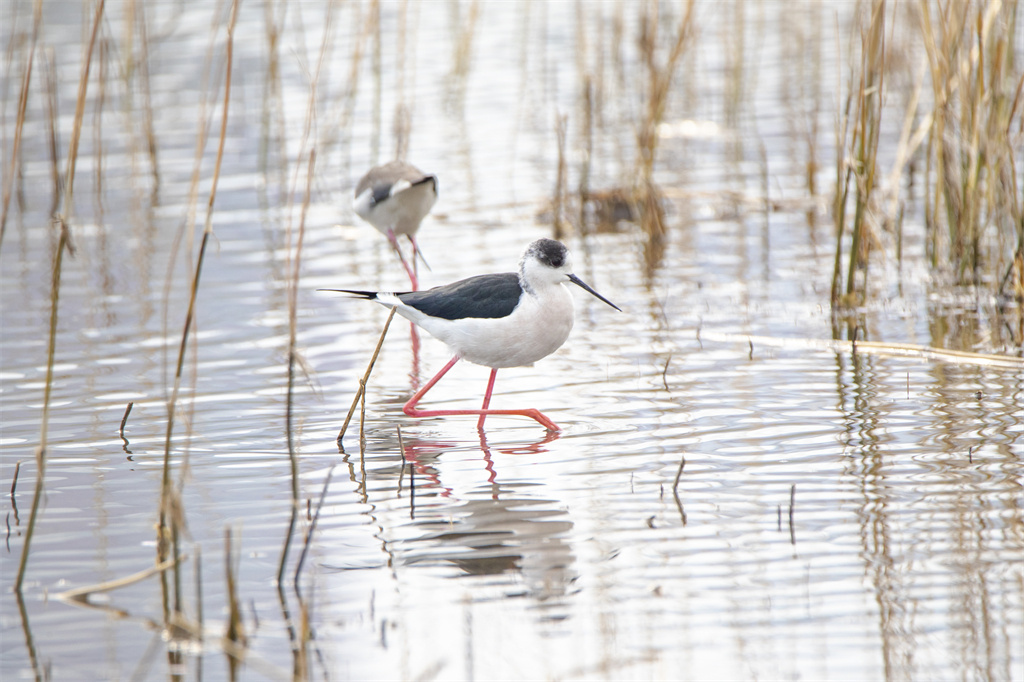 黑翅长腿鹬在水中闲庭信步 徐泽源 摄