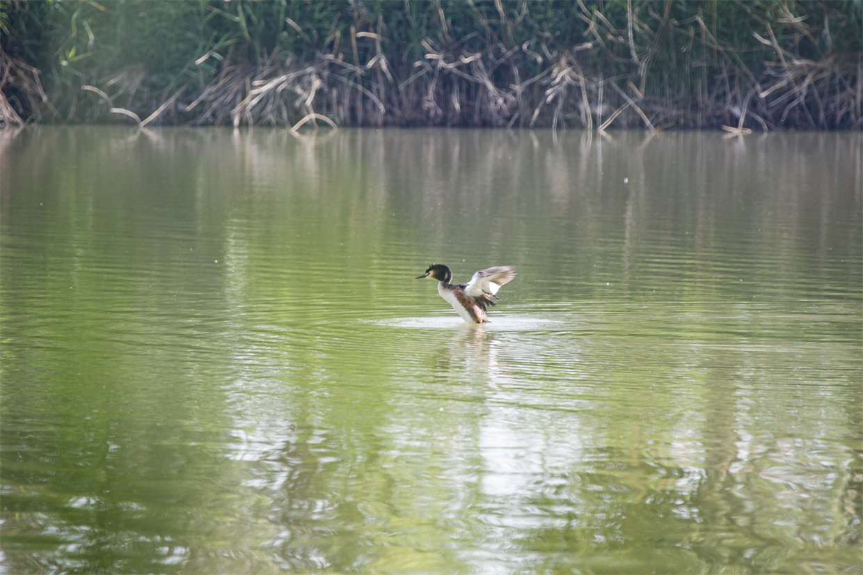 凤头䴙䴘在水中嬉戏 徐泽源 摄