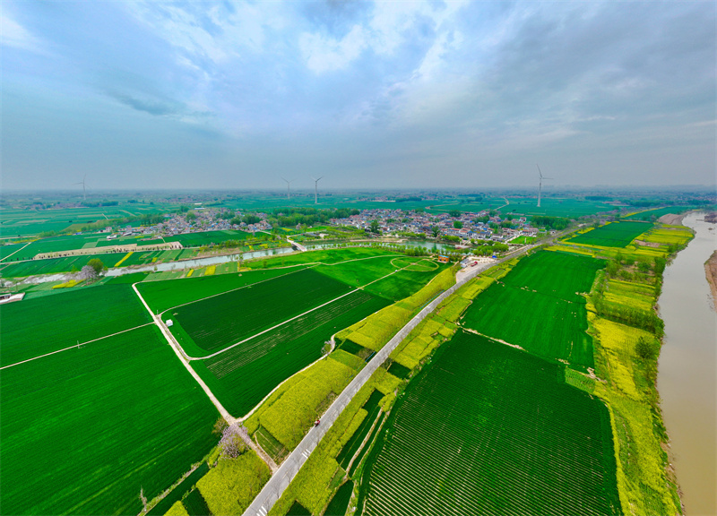 广袤的豫东平原,春风送暖,沃野披绿。在河南省睢县,绿油油的麦田与河流、油菜花、田间小路、村庄,构成一幅幅美丽的乡村生态画卷。作者:徐泽源