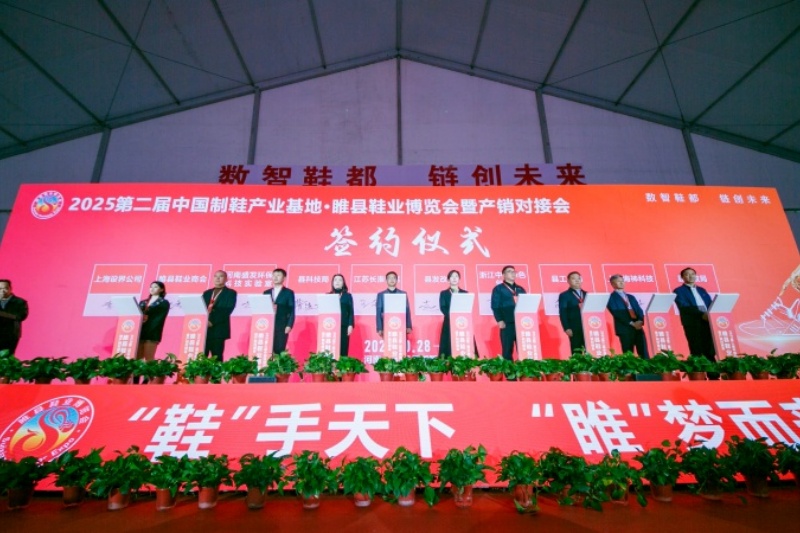 睢县始终秉持“把企业的小事当成睢县的大事,把企业家当亲人”的服务理念,坚持一个项目一名县级领导牵头、一个单位负责、一套班子推进、一站式办公、一抓到底的项目服务机制,实行新建项目在土地征用、拆迁时与群众零接触,在办理手续时与职能部门零接触的服务保障机制,全力以赴营造“六最”营商环境。乔丹体育从签约到投产仅用70天,鸿星尔克从签约到投产运行仅用45天,福盛鞋业仅用25天,不断刷新“睢县速度”。睢县被认定为河南省民营经济示范城市试点,睢县制鞋产业2025年获得河南开发区特色产业金名片荣誉称号。2025年8月4日,省委书记刘宁莅睢调研,对睢县紧盯“一双鞋”壮大主导产业的做法给予充分肯定,并提出殷切期望。 与首届鞋博会相比,本届展会布展总面积从2.6万平方米扩大至3万平方米,标准展位数量从近400个增至500余个。展区扩容新增的4000平方米空间,主要用于产销对接,为参展商和采购商搭建更充分的交流平台;展位数量的增加,让更多本地企业、贸易商及产业链配套商家得以参展,有效提升了展会的品牌集聚效应。据了解,60余家本土重点制鞋企业提前三个月启动新品研发设计,专门为此次产销对接会做准备。组委会同步邀约在睢品牌的上下游供应商和国内外采购商,通过“企业展位+集中推荐”的形式开展精准对接。与首届仅展示成品鞋、鞋材和鞋机三大核心板块不同,本届展会结合近两年产业发展趋势,新增跨境电商、供应链服务商及科技赋能产学研等多个板块,构建起从研发到销售的全产业链生态展示体系。