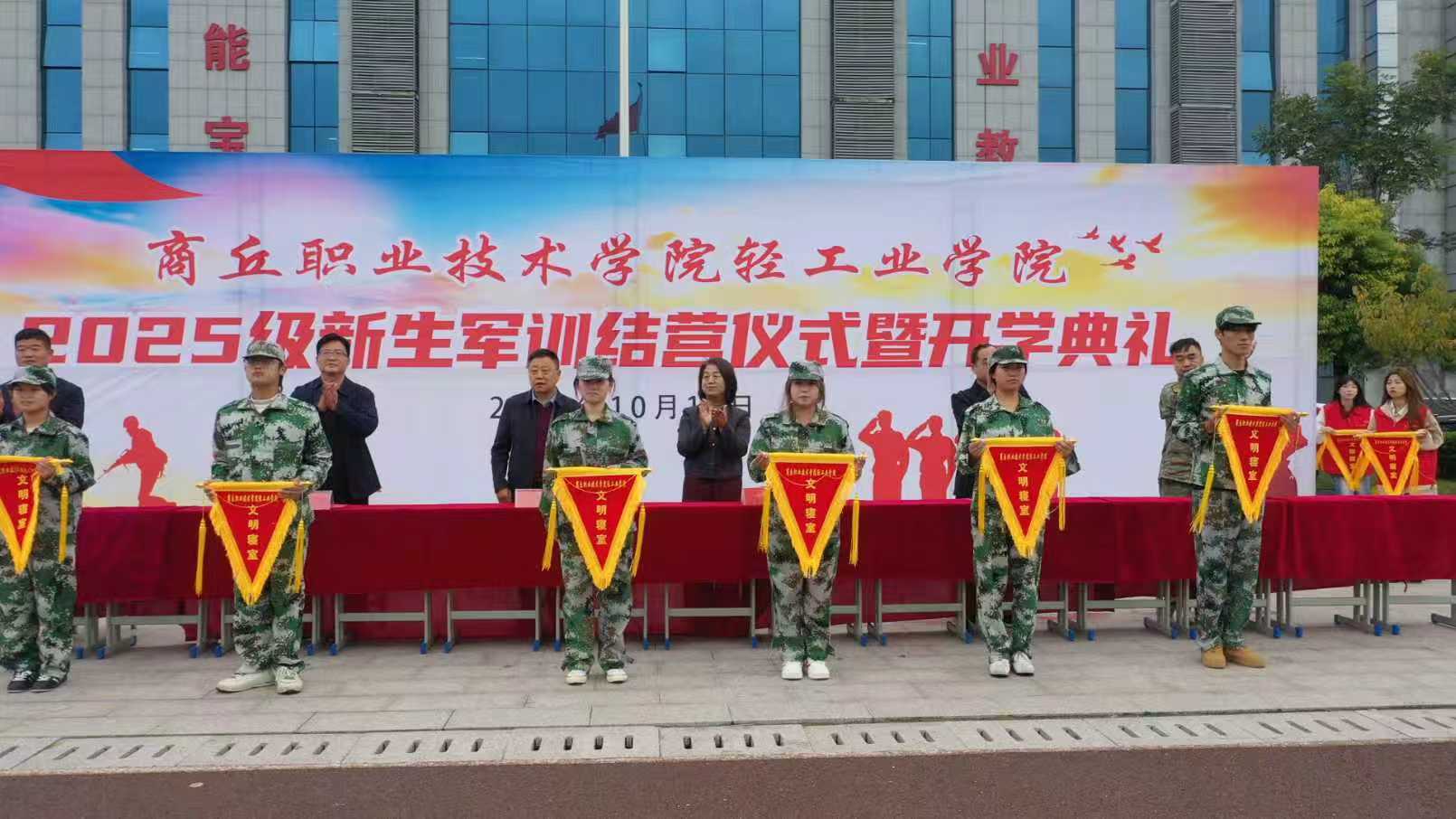 青春正当燃,筑梦向未来。10月15日,商丘职业技术学院轻工业学院举办2025级学生军训结营暨开学典礼活动。商丘职业技术学院轻工业学院党委书记李永忠、院长马巍及校领导班子出席。