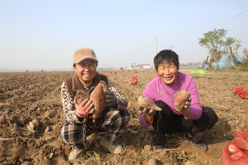 红薯产业的蓬勃发展,也有效带动了周边劳动力就业。采收期间,每天都有二十多名村民来到基地务工增收。“我在这儿干活,一天能挣七八十块钱,还不耽误照顾家里,心里挺满意的。”村民张艳玲一边忙碌,一边笑着说道。