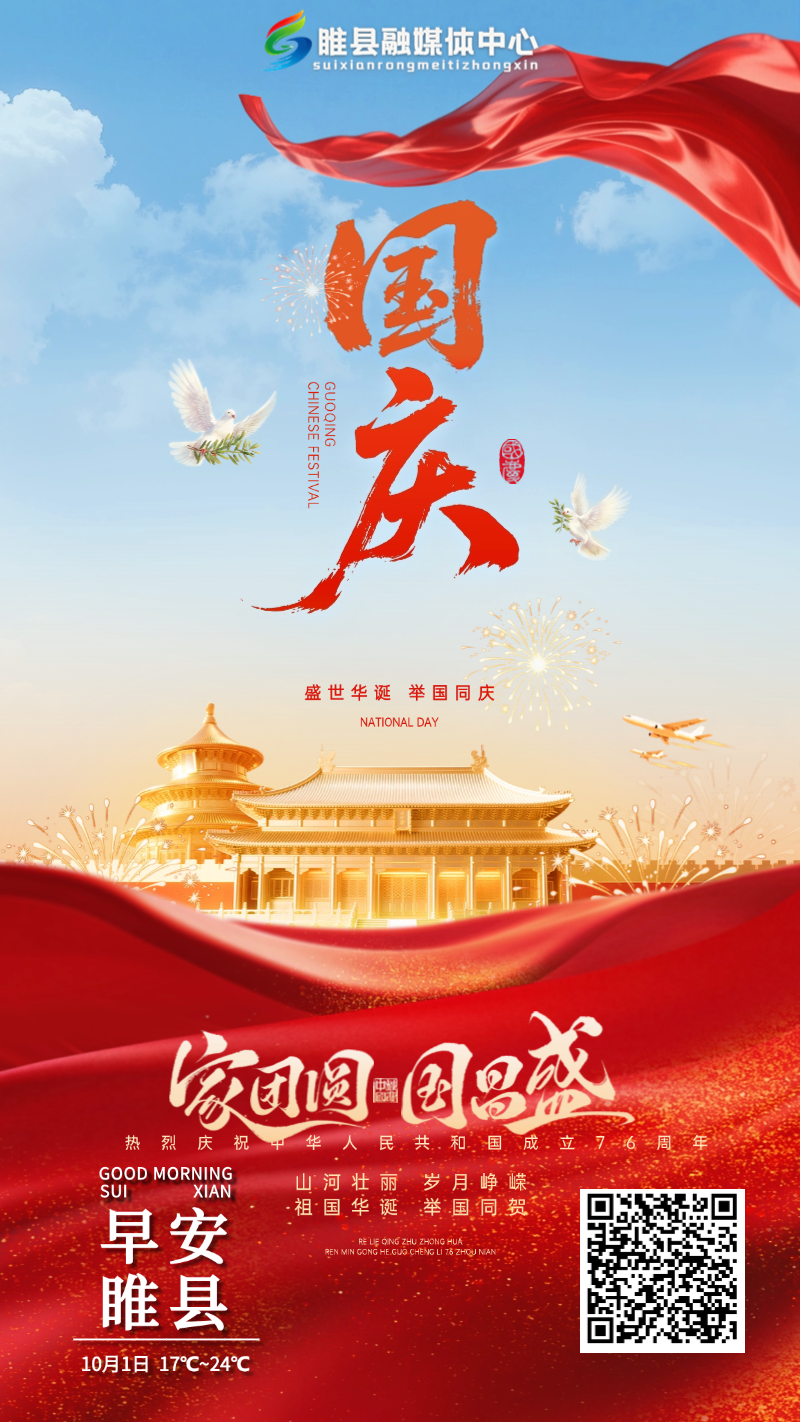 春华秋实,岁物丰成。今天,我们迎来了中华人民共和国成立76周年。走过波澜壮阔的历程,走向无比光明的前程。新的历史方位,新的奋斗征程。让我们以永不懈怠的精神状态、一往无前的奋斗姿态,凝心聚力、奋发进取,为以中国式现代化全面推进强国建设、民族复兴伟业而团结奋斗。早安,我的中国!