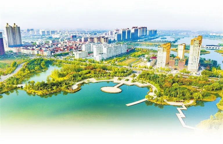 10月14日,睢县被如纱晨雾笼罩,楼房、道路、树木、湖泊在云雾中若隐若现,交织成一幅诗情画意的彩色画卷。徐泽源 摄(河南日报农村版)