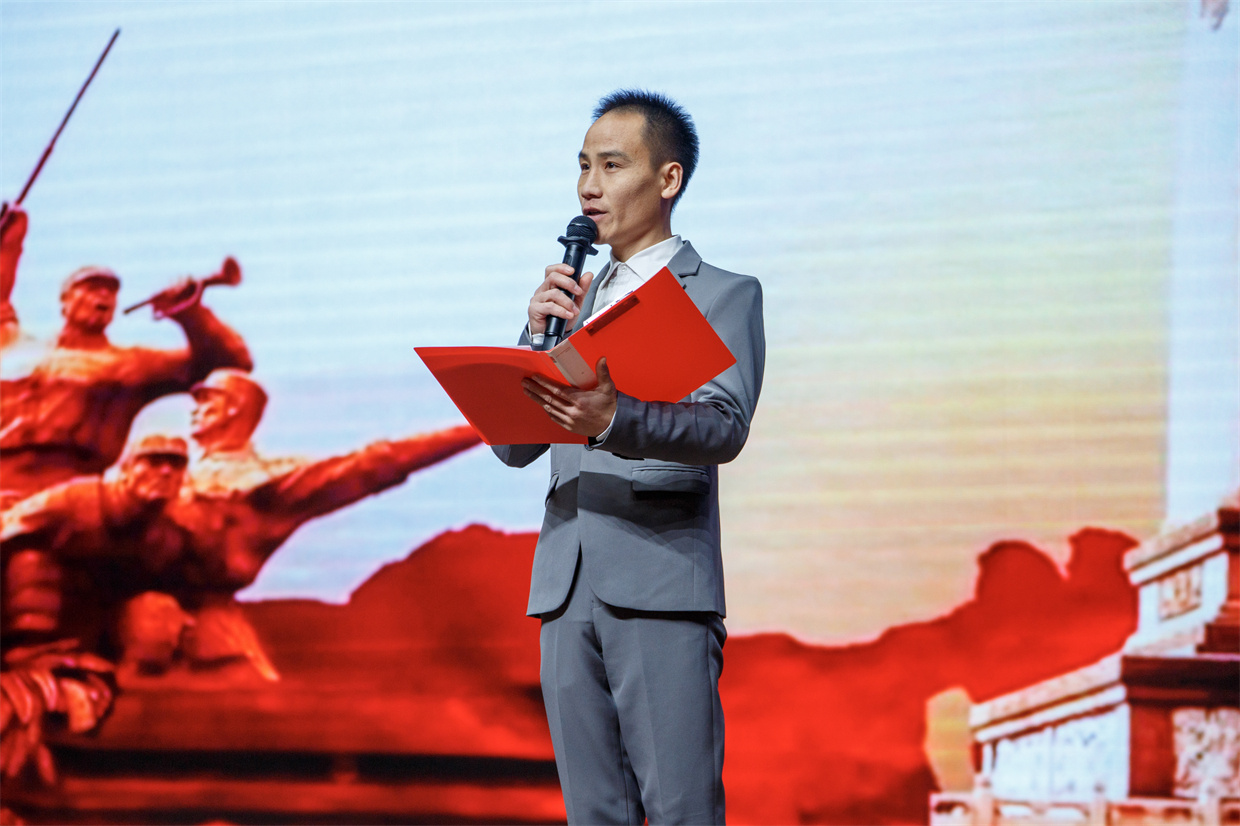 朗诵者以饱满的深情,生动再现了民族奋起救亡的历史画卷,诠释了不屈的英雄气概。 徐泽源 摄