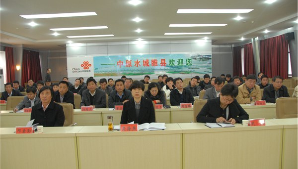 11月19日下午,我县在网通公司四楼会议室组织收听收看国务院召开的全国冬春农田水利基本建设电视电话会议,国务院副总理回良玉作重要讲话,县领导吴海燕、邓素勤、武英及相关单位负责人在我县分会场参加会议。