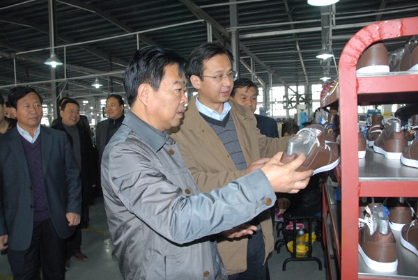 柘城县考察团一行先后到新浩纸业、富士康实训工厂、安踏嘉鸿鞋业等企业建设工地和生产车间进行实地考察。