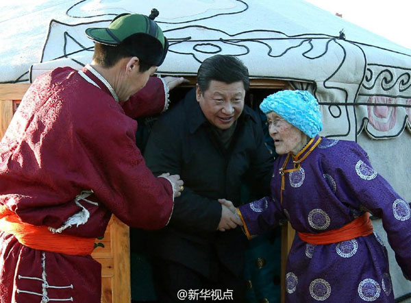 习近平看望81岁老牧民 用蒙语“巴雅尔太”说再见