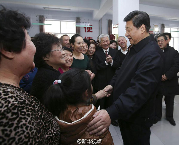 在锡林浩特市爱民社区,习近平走进卫生服务站、民惠超市、便民服务大厅,同工作人员和居民亲切交谈,了解社区关心低保户、残疾人及建设关爱型社区情况,对社区工作给予肯定。上车前,他叮嘱社区负责人:“要把人民放在心中最高位置,全力为群众排忧解难。”