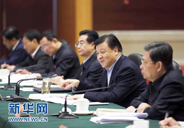 4月20日,第二批党的群众路线教育实践活动推进会在沈阳召开,中共中央政治局常委、中央党的群众路线教育实践活动领导小组组长刘云山出席并讲话。新华社记者 鞠鹏 摄