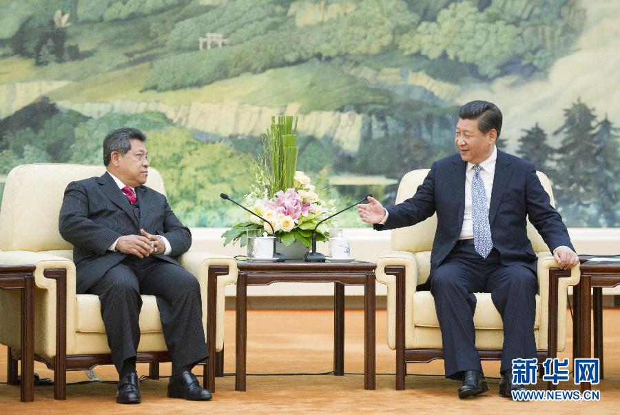 习近平指出,中国高度重视与周边国家的睦邻友好关系。为此,我提出了亲、诚、惠、容的外交理念,倡导共同、综合、合作、可持续的亚洲安全观,提出携手建设更为紧密的中国-东盟命运共同体、丝绸之路经济带、21世纪海上丝绸之路等一系列合作倡议。这充分表明,中国愿与周边国家和睦相处、共同发展。明年马来西亚将担任东盟轮值主席国,中方将予以积极支持,愿与包括马方在内的有关国家一道,推动中国-东盟关系取得更大发展。