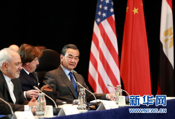 2月11日,中国外交部长王毅(右一)在德国慕尼黑出席叙利亚国际支持小组第四次外长会。新华社记者罗欢欢 摄
