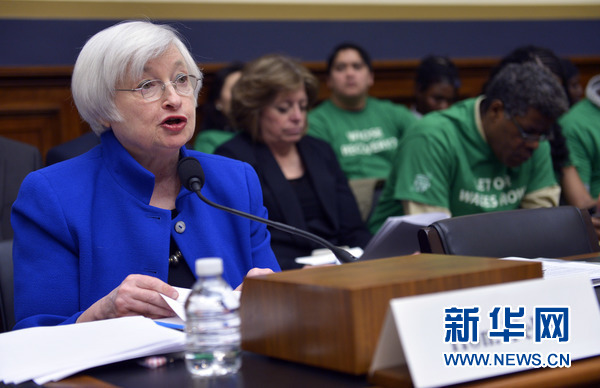 2月10日,在美国首都华盛顿,美国联邦储备委员会主席耶伦(左)出席美国国会众议院金融服务委员会的听证会。新华社记者 殷博古 摄