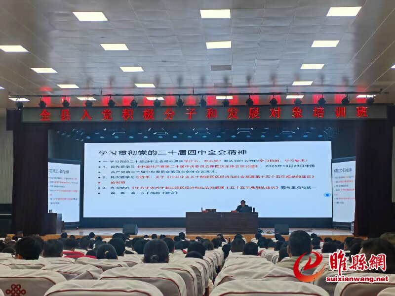 为深入学习贯彻习近平新时代中国特色社会主义思想,进一步加强党员队伍建设。11月8日至11月10日,县委组织部组织开展了全县入党积极分子和发展对象培训班,来自全县农村(社区)、机关事业单位和新兴领域350余名入党积极分子和发展对象参加了培训。县委组织部副部长袁松鹏、县委组织部部务委员邢志锴参加培训班开班式。