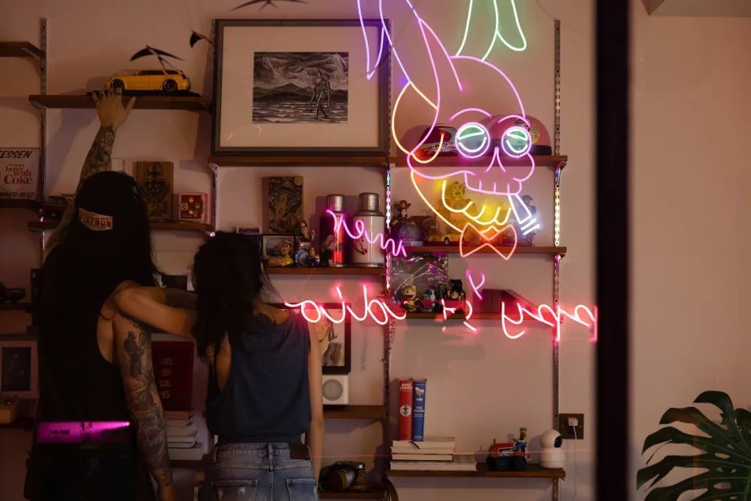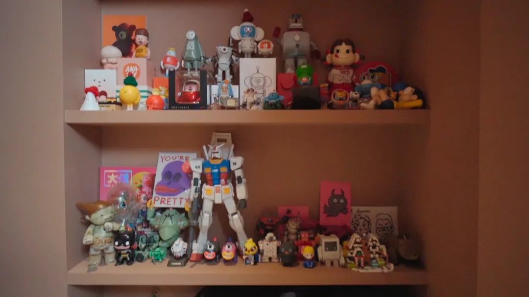 比如summer夫妇把两人的爱好全都放在客厅的置物架上。