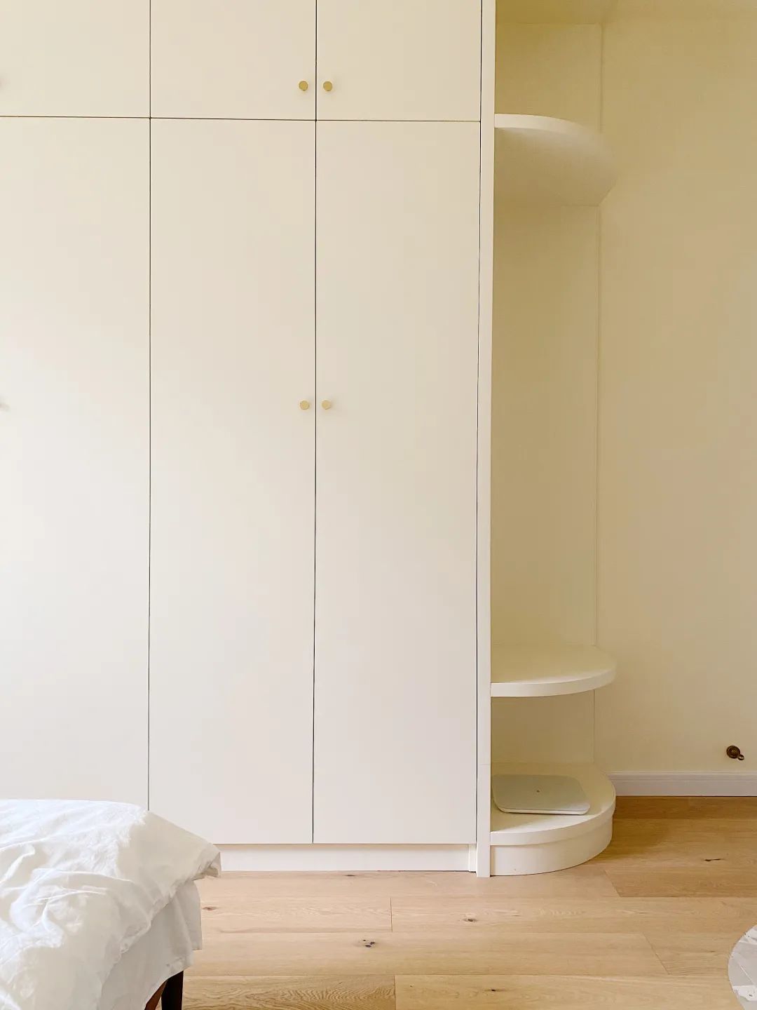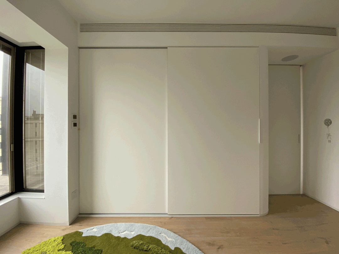 想要干净的柜门面,还要提前通知木作团队不要在柜顶和两侧加封边板,不然你还没反应过来,师傅就给你加好了,柜子也就不能达到干净整体的效果。
